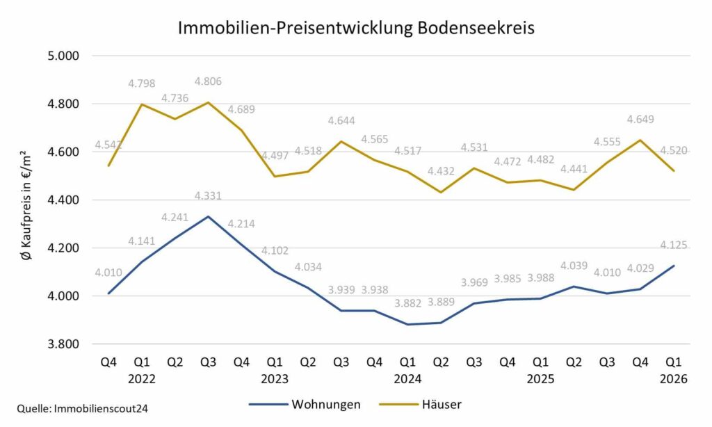 Sie planen in der Region Allgäu Oberschwaben Bodensee eine Immobilie zu kaufen. Informieren Sie sich in unseren quartalsmäßig erscheinenden Marktberichten zu den neuesten Entwicklungen und Trends der Kaufpreise für Häuser und Wohnungen.